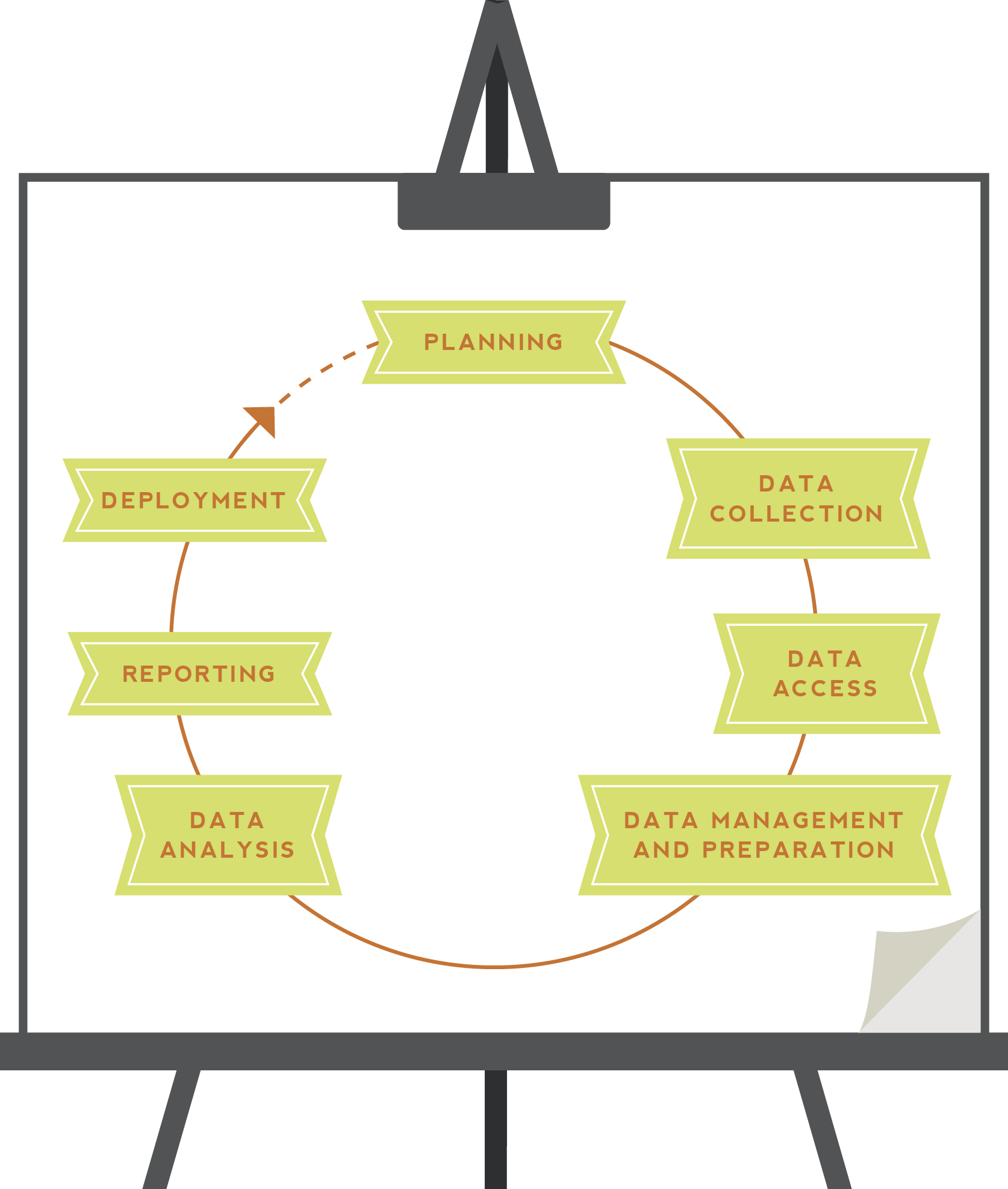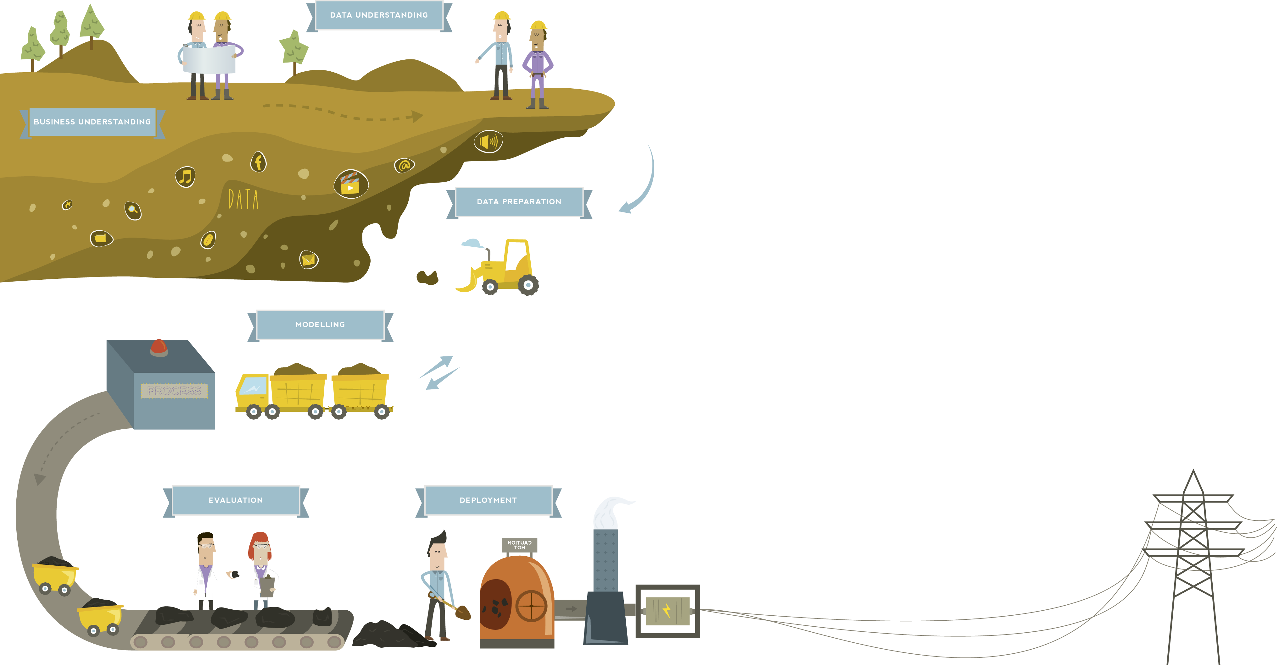 Purple Analytics adheres to a universally accepted standard of Data Mining called CRISP-DM (Cross Industry Standard Process for Data Mining). As can be seen in the figure below, there are 6 very important phases in every analytic project:
